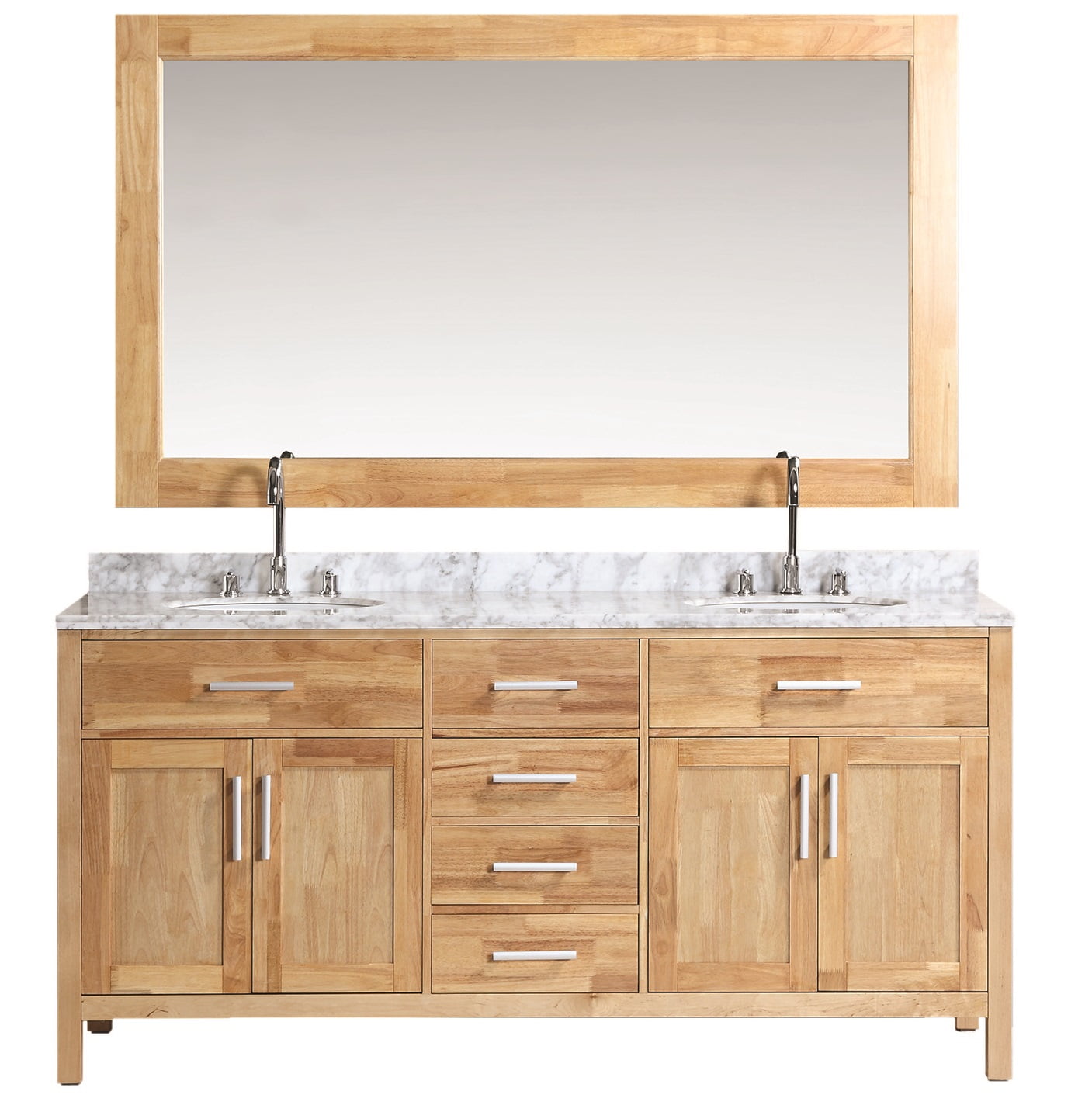 Ryland 72 Double Bathroom Vanity Set. This 60'' double vanity features two porcelain apron sinks set in a solid and engineered wood cabinet in your choice of colors. Beckett 72 inch double bathroom vanity in white, white cultured marble countertop, undermount square sinks, no mirror.